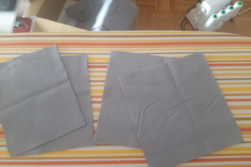 Jetzt wird auch die gegenüberliegende Seite eingebügelt, dann die beiden anderen Seiten, alles ebenfalls bei 1,5 cm.