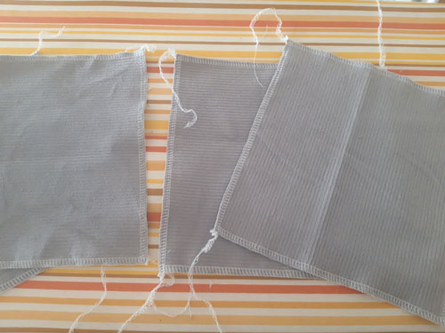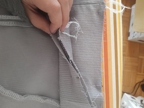 Ich scheide hier an der geschlossenen Seite die Ecken ab, um später nach dem Wenden schöne Ecken zu haben.