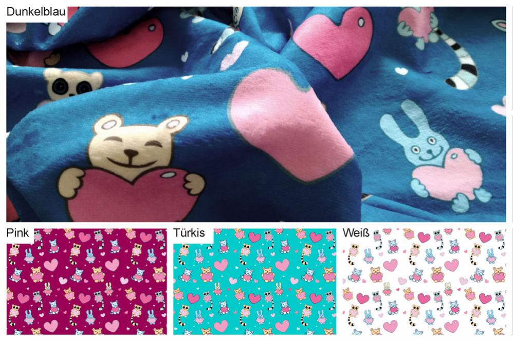 Schmusedecken können aus weicher und wärmender Meterware genäht werden. Eine große Auwahl an kuscheligen Stoffen, wie Fleece-, Fell-, Wellness-Fleece- und Frotteestoffen stehen zur Auswahl. Suchen Sie die Stoffe passend zur Jahreszeit in der Sie sie nutzen möchten aus - leichtere Stoffe für die warmen Jahreszeiten und dickere Stoffe für die kalten Jahreszeiten. Tolle Farben und verschiedene Muster und dazu preisgünstig - Sie haben die Qual der Wahl.