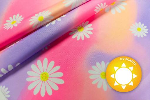 Modischer Swimwear-Jersey mit farbenfrohem Print und hohem UV-Schutzfaktor: UPF 50+!Die Ware überzeugt nicht nur mit einem trendigen Design, sondern zudem mit hochwertigen Eigenschaften. Der hohe Elasthan-Anteil sorgt dafür, dass der Stoff sich jeder Bewegung anpasst und dennoch seine Form behält. Ideal für figurbetonte Bekleidung, die nicht einengen soll, wie z. B. Bademode oder Sportbekleidung. Mit Tanz-Outfits, Gymnastikanzügen und Laufbekleidung aus diesem schnell trocknenden Material macht Sport doppelt Freude! Auch Kissenbezüge und Bespannungen sehen damit toll aus.