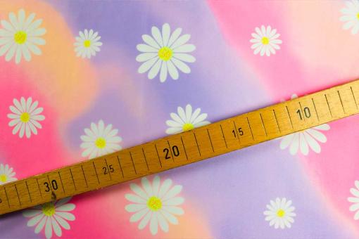 Schöner Farbverlauf mit kleinen Blüten auf hochelastischem Jersey - ideal für figurbetonte Kreationen!