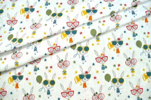 Reiner Baumwollstoff bedruckt mit kleinen Hasen - ideal für Heimtextilien und vieles weitere