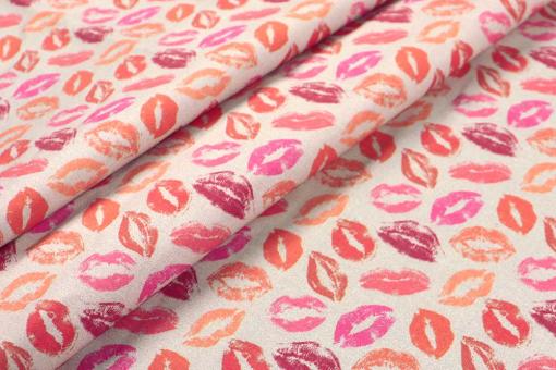 Weicher, sehr angenehmer Baumwollstoff mit flippigem Kussmund-Muster