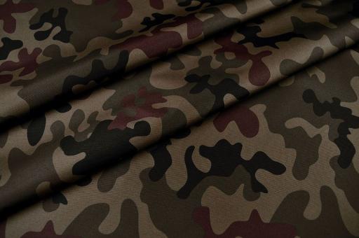 Fans von Tarnstoffen kommen hier voll auf ihre Kosten: Dies ist ein Polyesterstoff der neuen Generation. Diese stabile Ware ist wasserabweisend und reißfest. Der Stoff hat ein hohes Warengewicht und ist von stabiler Qualität.