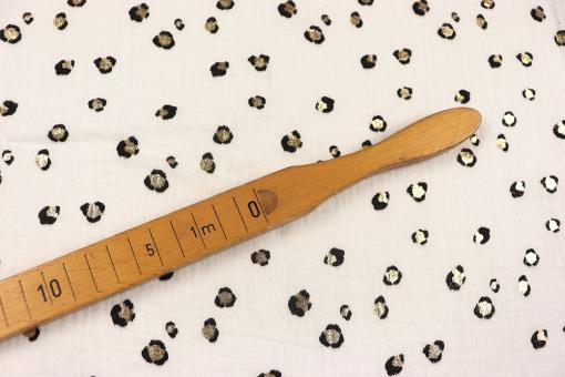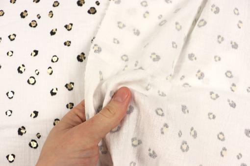 Dieser Double Gauze besticht mit seinem glänzenden Leo-Design. Das weiche Material wird längst nicht mehr nur für Babytücher und Wickeltischauflagen verwendet, sondern auch für Baby- und Kinderbekleidung, Sommerbekleidung, Accessoires wie leichte Schals, Kissenbezüge und vieles andere mehr. Auch für Dekorationen aller Art sowie zum Basteln ist dieser Stoff hervorragend geeignet. Der hautsympathische Warengriff und die interessante Optik machen das Material sehr beliebt. Bitte beachten Sie, dass der Stoff beim ersten Waschen etwas einlaufen kann!