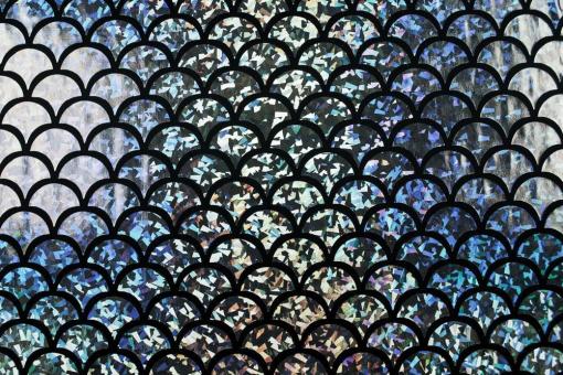Hologramm Folienstoff Schuppe - Silber/Schwarz