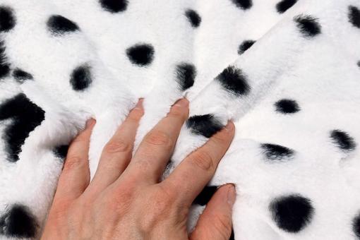 Kuscheliges Kunstfell mit schwarzen Tupfen - toll für Kostüme und witzige Dekorationsideen