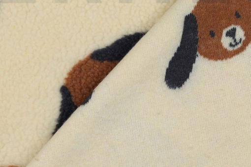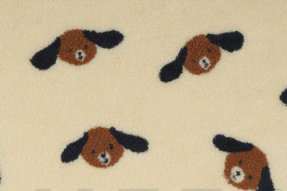 Super kuscheliger Sherpa in Creme mit niedlichem Hunde-Motiv