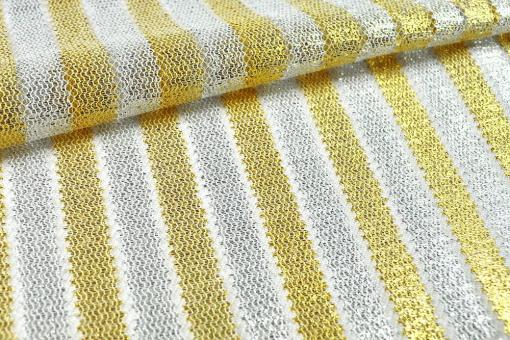 Ein Effektstoff für die besonderen Glanzmomente. Hochglänzender Dekorationsstoff mit Lurex-Effekt. Dieser metallische Glanz harmoniert wunderbar mit dem Streifenmuster. Je nach Lichteinfall erzielen Sie damit sensationelle Dekorationen, die die Betrachter in Begeisterung versetzen werden. Perfekt also für Dekorationen, die zum Blickfang werden sollen. Egal ob für Fasching, Events, Disco oder auch festliche Anlässe - die Vorhänge, Raumteiler, Kissen, Tischdecken, Drapierungen und vieles mehr tauchen die Räumlichkeiten in eine besondere Atmosphäre. Der weiche Warengriff sorgt für einen schönen Fall. Natürlich eignet sich dieser Stoff auch für glanzvolle Kostüme für Fasnacht/Fasching/Karneval, Accessoires wie Schals und vieles mehr.