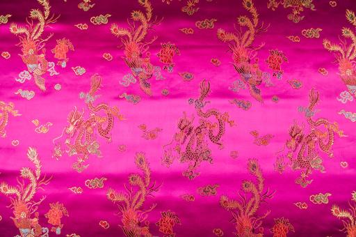 China-Seidenimitat - Chinesische Drachen und Pfauen - Pink