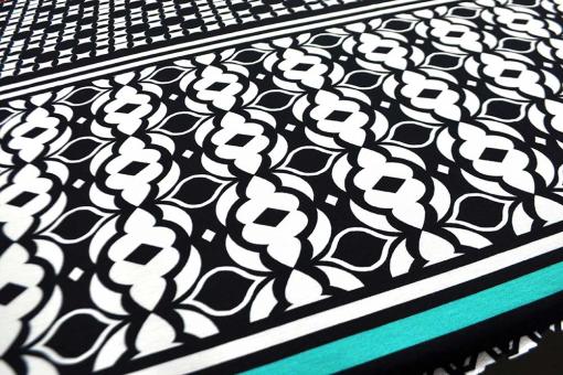Auf diesem geschmeidigen Jersey ist ein elegantes Design zu sehen, das sich toll kombinieren lässt. Die Viskose sorgt dafür, dass er geschmeidig, atmungsaktiv und locker-leicht sowie super bequem zu tragen ist. Der Elasthan-Anteil trägt ebenfalls dazu bei - der Stoff macht also jede Bewegung mit!Ein Panel hat eine Länge von ca. 85 cm.
