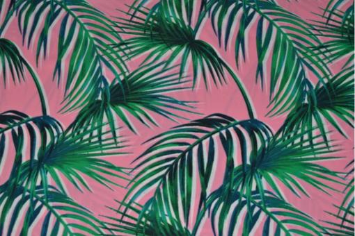 Tolles Palmenmotiv auf pinkem, hochelastischem Jersey - da sind Urlaubs-Vibes vorprogrammiert!