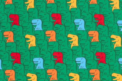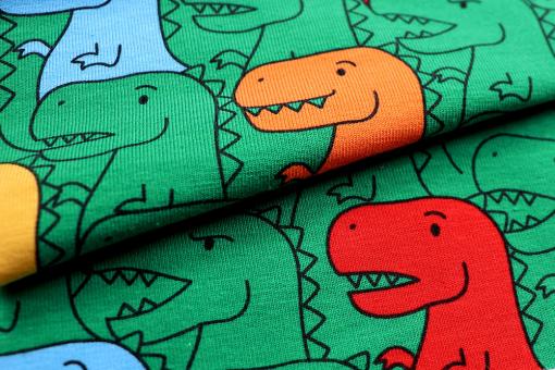 Hunderte grüne Dinos, deren bunte Freunde aus der Masse herausstechen, sind auf diesem super bequemen Jersey zu sehen - richtig cool!