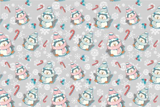 Polarfleece-Stoff - Frierende Pinguine Hellgrau