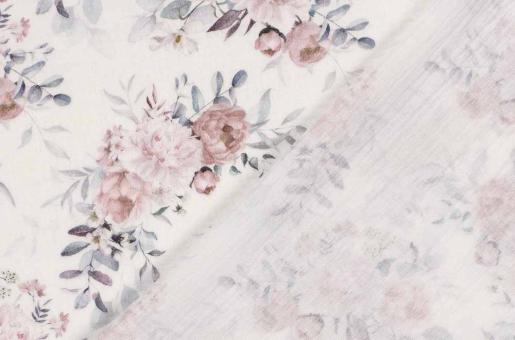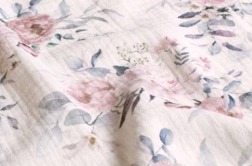 Digital bedruckter Musselin aus reiner Baumwolle mit atemberaubend schönem Pflanzenmotiv!