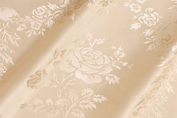 Edler Satin mit eingewebtem Rosenranken-Design - fein schimmernde Meterware für elegante Dekorationen und festliche Kleidung