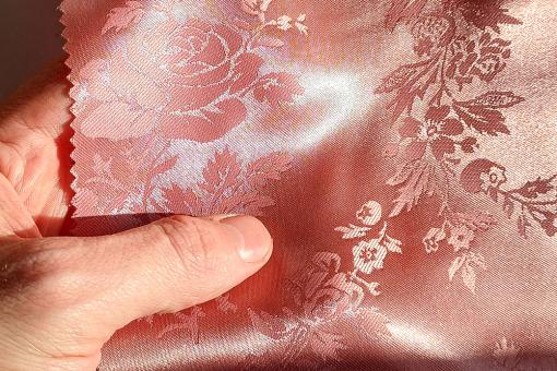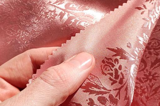 Edler Satin mit eingewebtem Rosenranken-Design - fein schimmernde Meterware für elegante Dekorationen und festliche Kleidung