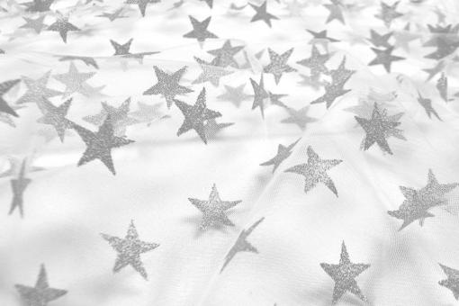Tüll - Glänzende Sterne - Silber