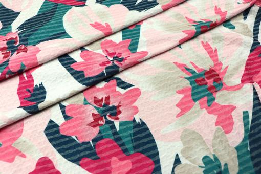Blumiger Bekleidungsstoff, der jede Bewegung mitmacht!
