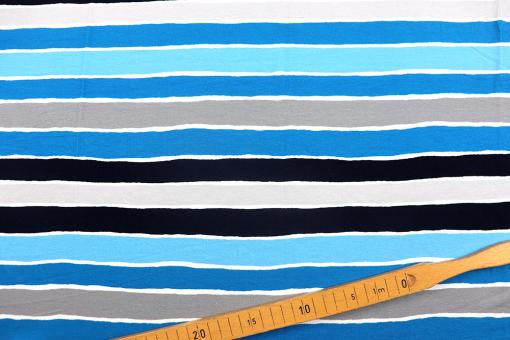 Viskosejersey - Querstreifen - Blau/Taupe/Grau