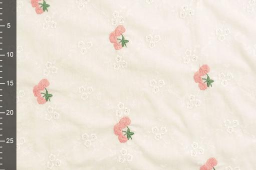 Baumwollstoff Kirschen-Stickerei - Rosa
