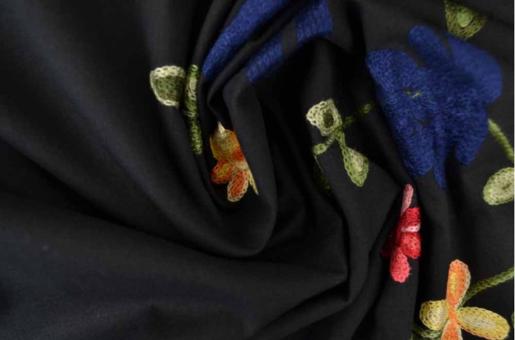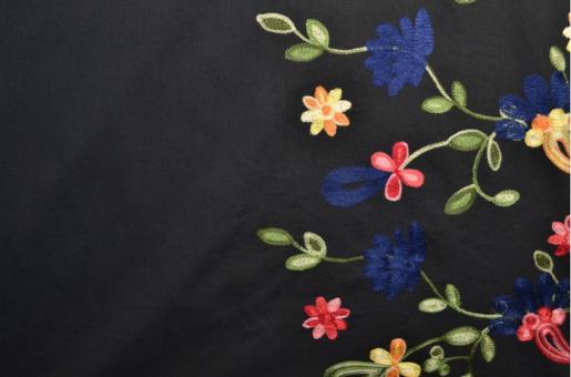 Baumwollstoff bestickt - Trachten-Bordüre - Schwarz