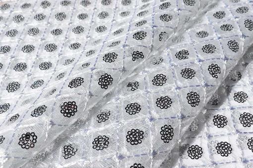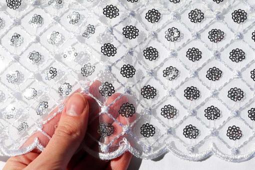 Luftiger Netzstoff mit Pailletten, Bestickung und dekorativer Bordüre