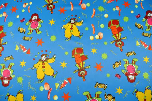 Schön bunter Verdunkelungsstoff mit witzigen Clowns für kleine und große Zirkus-Fans!
