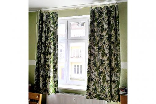 Ab ins Grün: Opulent bedruckter Blackout in permanent schwer entflammbarer Ausführung