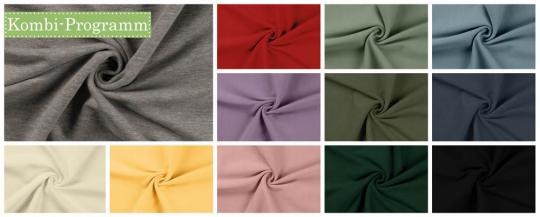 Dieser Stoff ist Teil unseres Kombi-Programmes. Das heißt, Sie können weitere Stoffqualitäten, in den garantiert gleichen Farben kaufen.Hier finden Sie die anderen Stoffe des Programmes: