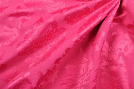 Zwei geschmackvoll aufeinander abgestimmte Farben ergänzen sich zu einem harmonischen Gesamtbild. Der Stoff ist ein sogenannter Jacquard, das heißt er ist nicht bedruckt/beflockt, sondern das Muster ist eingewoben, was für eine aufwändige Verarbeitung spricht. Ein feines Warenbild mit einem seidenmatten und einem glänzenden Garn. Schön und edel im Griff, mit viel Volumen. Die Ware ist blickdicht.