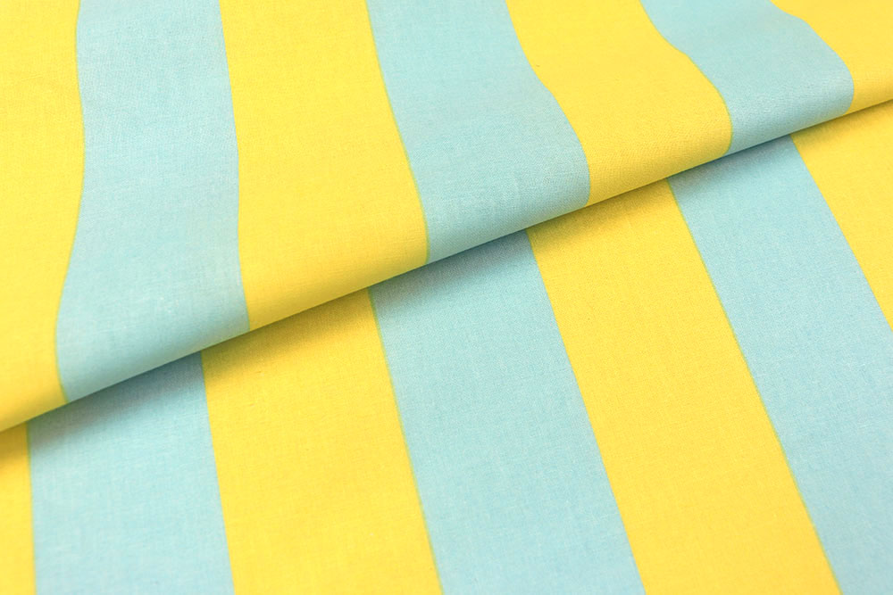 Baumwollstoff Blockstreifen - Gelb/Hellblau