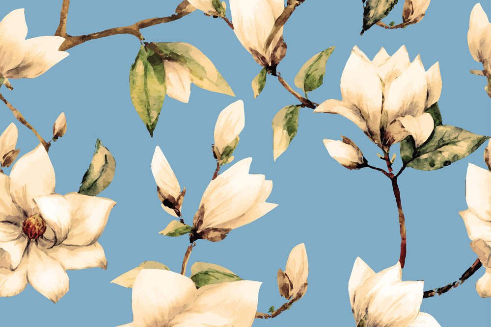 Dieser pflegeleichte Dekostoff entführt Sie in die florale Traumwelt der großen Magnolienblüten