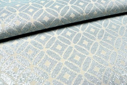 Dieser Jacquard verzaubert mit einem Silberschimmer, den unsere Kamera nicht einzufangen vermag. In natura glitzert der Stoff im Licht wie ein Kristall. Sowohl das grafische Muster als auch der Silberschimmer wurden aufwändig eingewebt. Der Dekostoff aus pflegeleichtem Mischgewebe eignet sich für Dekorationen und Heimtextilien aller Art. Egal, ob als Übergardinen, Tischwäsche, Kissen oder Bettüberwürfe, als Raumteiler, usw. - dieser Stoff sorgt für umwerfende Akzente.