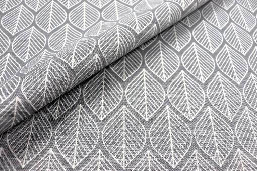 Premium-Jacquard - Zeitlose Blätter - Grau/Creme