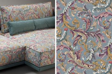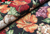 Hochwertige, in aufwändiger Web-Technik gefertigte, farbenfrohe Gobelin-Stoffe mit schönen Blumenmotiven.