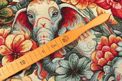 farbenfroher Gobelin-Stoff, der eine tolle Atmosphäre schafft.