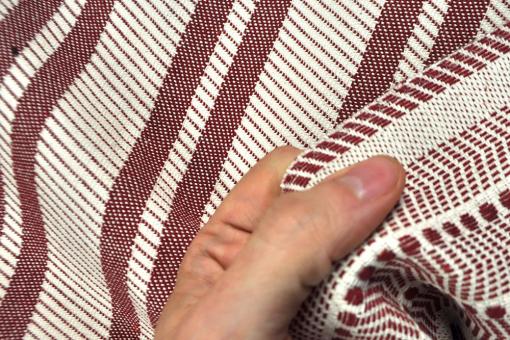 Gestreifter, weicher Gobelin im Ethnostil, der zum Teil aus recycelten Fasern besteht