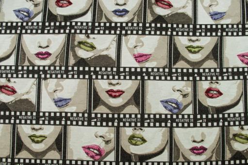 Film ab für verführerische Lippen auf edel gewebtem Dekostoff