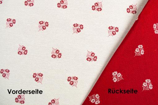 Hochwertiger, edler Jacquard-Möbelstoff mit Edelweiß im Landhausstil. Der Stoff ist aufgrund seiner Jacquard-Webart beidseitig verwendbar und hat eine feste, schwere Qualität. Er ist geeignet für Möbelbezüge, dazu passende Kissenbezüge, Überwürfe und natürlich schwere Vorhänge/Gardinen. Mit diesem Stoff zaubern Sie im Handumdrehen ländlichen Charme in Ihre Räume.
