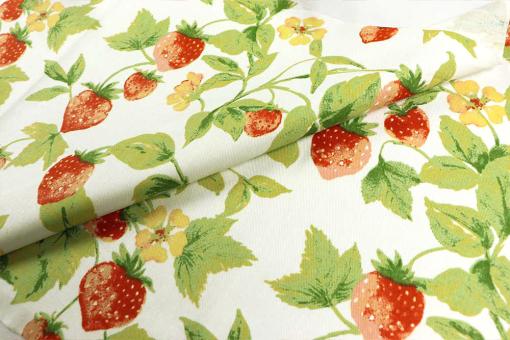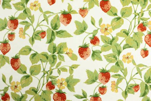Sie haben Lust auf etwas Fruchtiges? Erdbeeren sind einfach zeitlos; hier zieren sie einen hochwertigen Stoff aus 100% Baumwolle, der aufgrund der Köperbindung äußerst robust und strapazierfähig ist.Die feine Struktur in Verbindung mit dem dekorativen Design verleiht dieser Ware eine fantastische Optik. Sie ist ideal geeignet für Dekorationen und Heimtextilien aller Art wie Übergardinen, Kissen, Tischwäsche und vieles mehr. Auch für leichte Sonnensegel lässt sich der Stoff gut einsetzen. Bitte beachten: Der Stoff kann beim ersten Waschen etwas einlaufen.