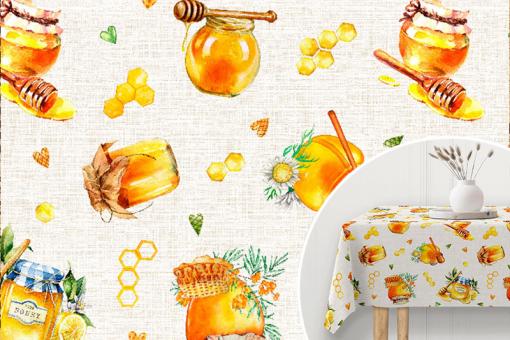 Holen Sie sich diesen Outdoor-Dekostoff mit tollem Honig-Design direkt nach Hause!Dieser beschichtete Stoff ist schmutz- und fleckabweisend, kann einfach abgewischt werden und ist deshalb perfekt für den Außenbereich geeignet. Der Einsatz reicht von abwischbaren Tischdecken, Sitz- und Rückenkissen für Gartenmöbel, Vorhänge für Wintergärten, bis hin zu Wind- und Sichtschutz für Balkon und Terrasse und vieles andere mehr. Der Stoff ist bedingt blickdicht und matt, mit einem schönen Warengriff. Die Verarbeitung und Pflege des Materials ist einfach. Der Baumwollanteil sorgt für die natürliche Optik, der Polyesteranteil macht ihn knitterarm und pflegeleicht. Zudem gibt es kein Ausfransen beim Zuschneiden!