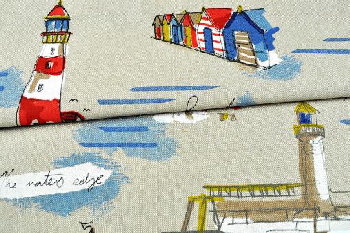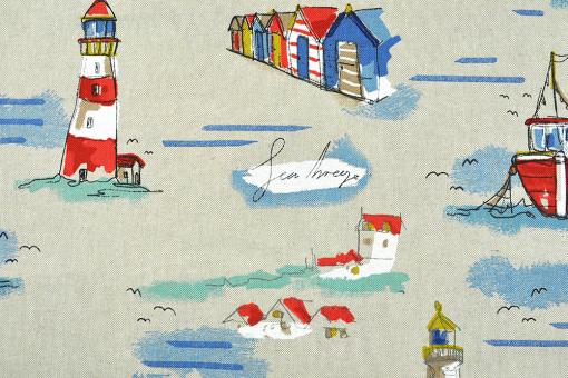 Wunderschön bedruckter Dekostoff in Leinenoptik für maritime Akzente in Ihren vier Wänden