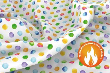 Bunt bedruckter, permanent schwer entflammbarer Dekostoff aus Trevira CS
