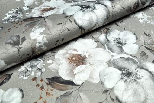 Dekostoff mit eingewebten Glitzerfäden und üppigem Blumen-Motiv - ideal für viele Einsatzzwecke geeignet!