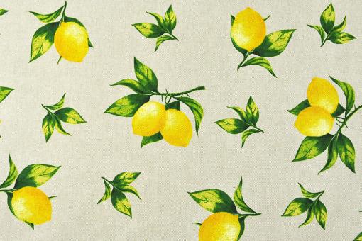 Echtes Sommerfeeling ist mit dieser fruchtigen Meterware garantiert.Sie überzeugt nicht nur durch ihr wunderschönes Motiv, sondern auch durch die rustikale Leinenoptik und die leicht strukturierte Oberfläche. Durch den hohen Baumwollanteil hat der Stoff einen weichen und hautsympathischen Warengriff. Das Material der Wahl für Innen-Deko aller Art, wie Kissen, Tischdecken, Vorhänge, Accessoires und vieles mehr! Das tolle Design passt zu nahezu jedem Einrichtungsstil.