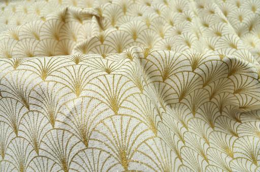 Glitzer peppt Dekorationen aller Art gehörig auf - nicht nur zur Weihnachtszeit!Hier wurde die rustikal anmutende Grundware mit glitzernden Goldfäden durchzogen und zudem mit eleganten Ornamenten versehen, wodurch tolle Effekte erzielt werden können. Egal, ob Sie daraus Übergardinen, Tischwäsche, Kissen, Überwürfe oder etwas völlig anderes fertigen - dieser Stoff bringt Atmosphäre in Ihre Räume. Der Stoff ist in Leinwandbindung gewoben, mit einer sichtbaren Webstruktur. Dadurch wirkt er rustikal gemütlich.