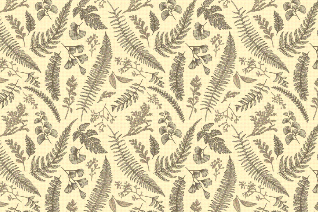 der feinen Illustration verschiedenster Farne und Gräser, ist dieser