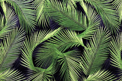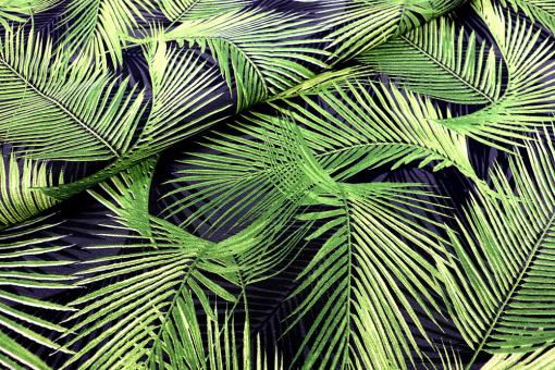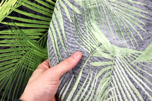 Dekostoff mit Palmblättern - realistische Optik auf pflegeleichtem Mischgewebe!