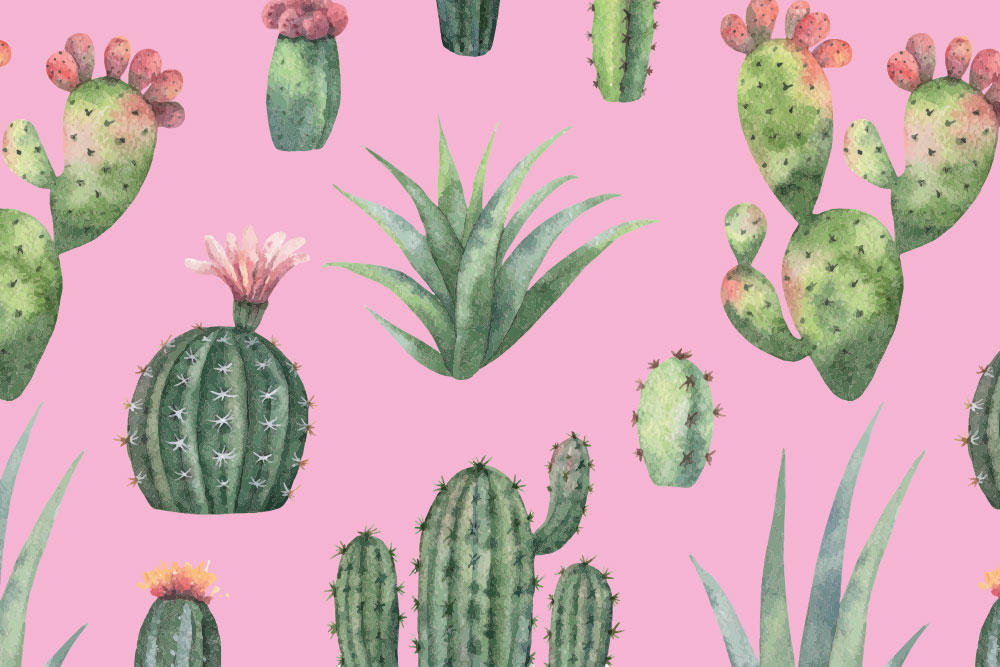 Schmutz- und wasserabweisender, bedruckter Outdoor-Deko-Stoff mit tollem Kakteen-Motiv